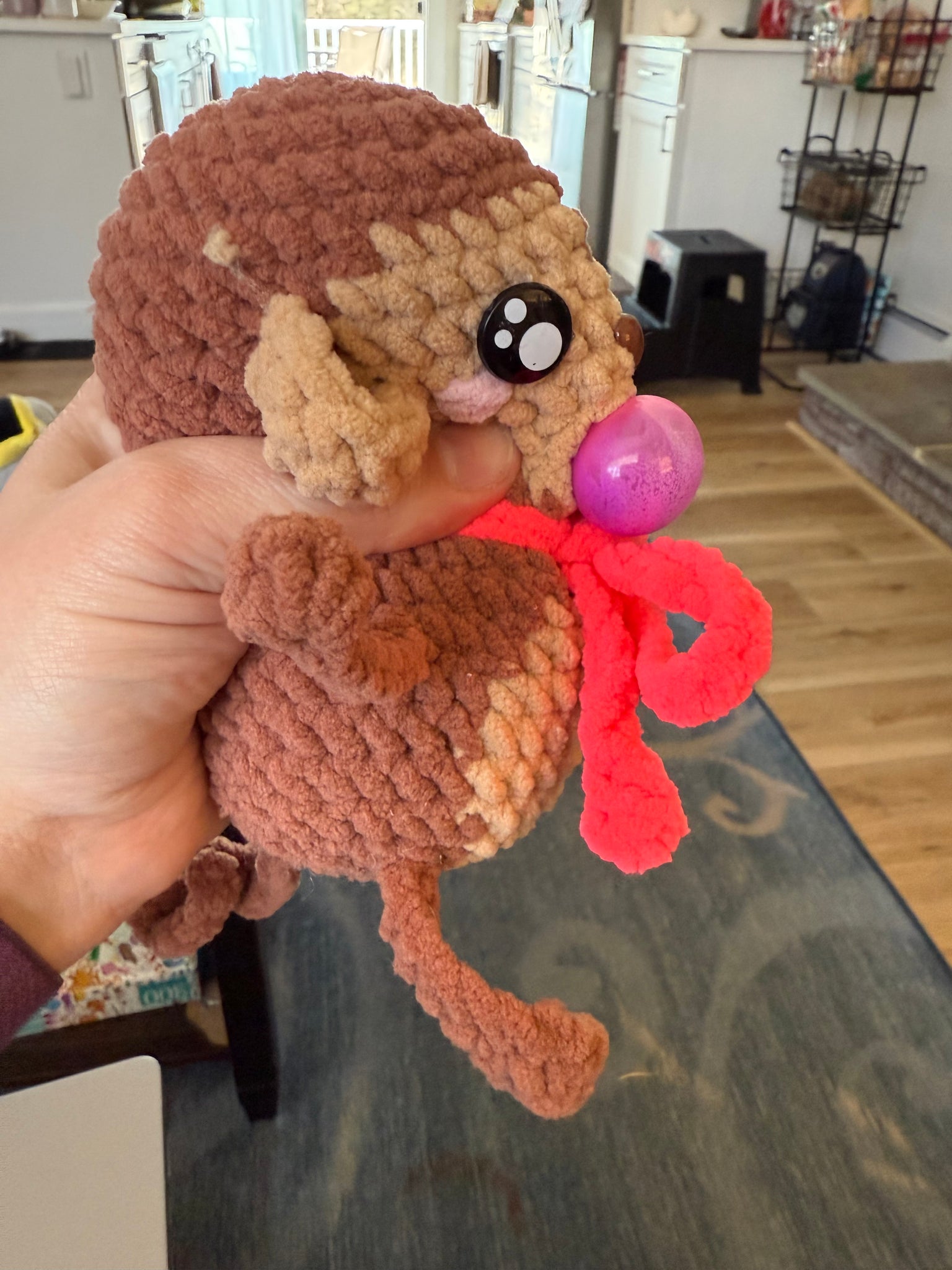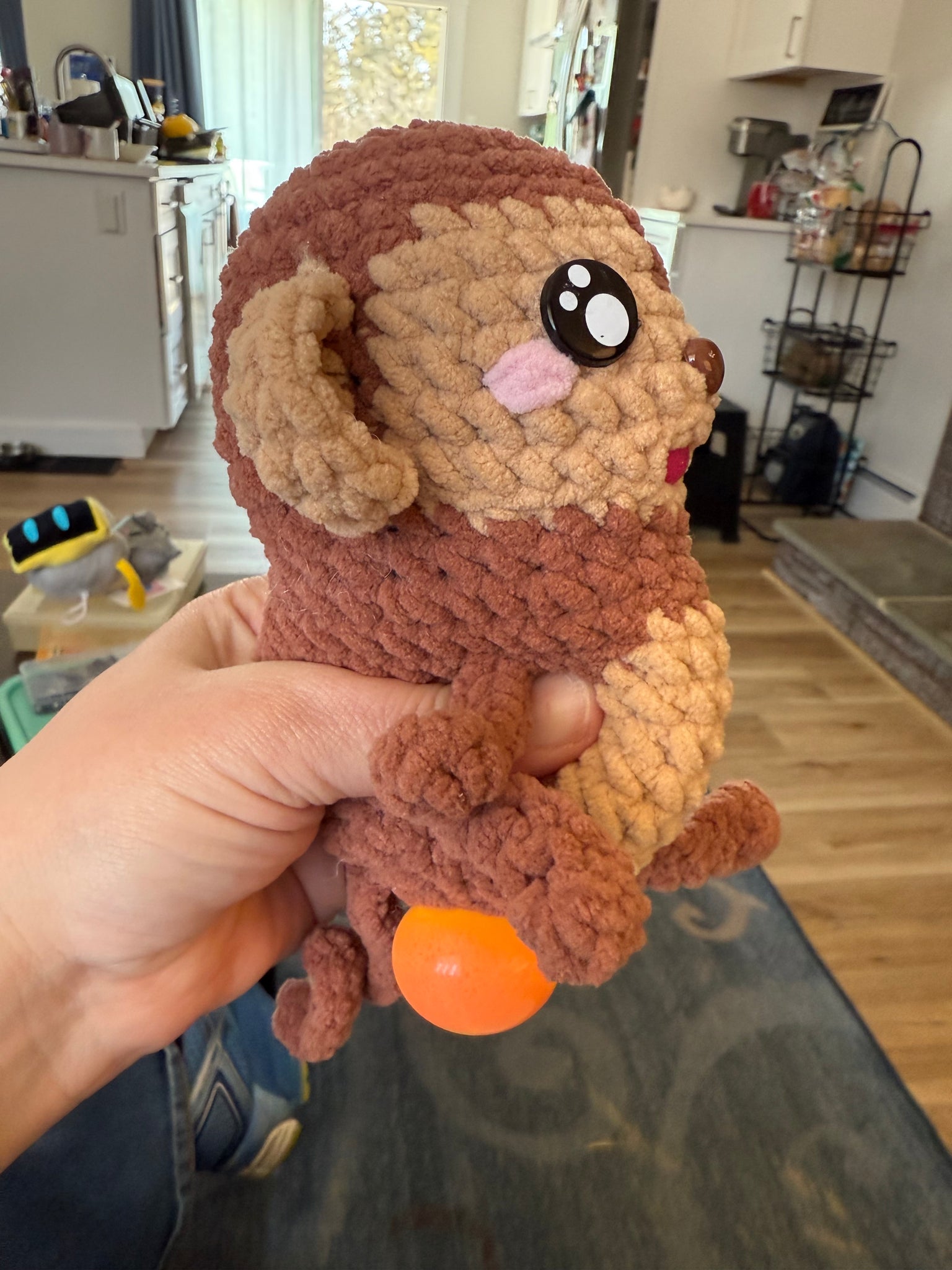 Monkey See, Monkey Doo Doo is a no-sew, quick pattern to work up. Monkey See, Monkey Doo Doo usually takes me between 1.5-2 hours to make and uses two small stress balls, making Monkey See, Monkey Doo Doo a fun pattern for markets or just stress relief for yourself! This pattern includes several helpful photos to help guide crocheters throughout the pattern.