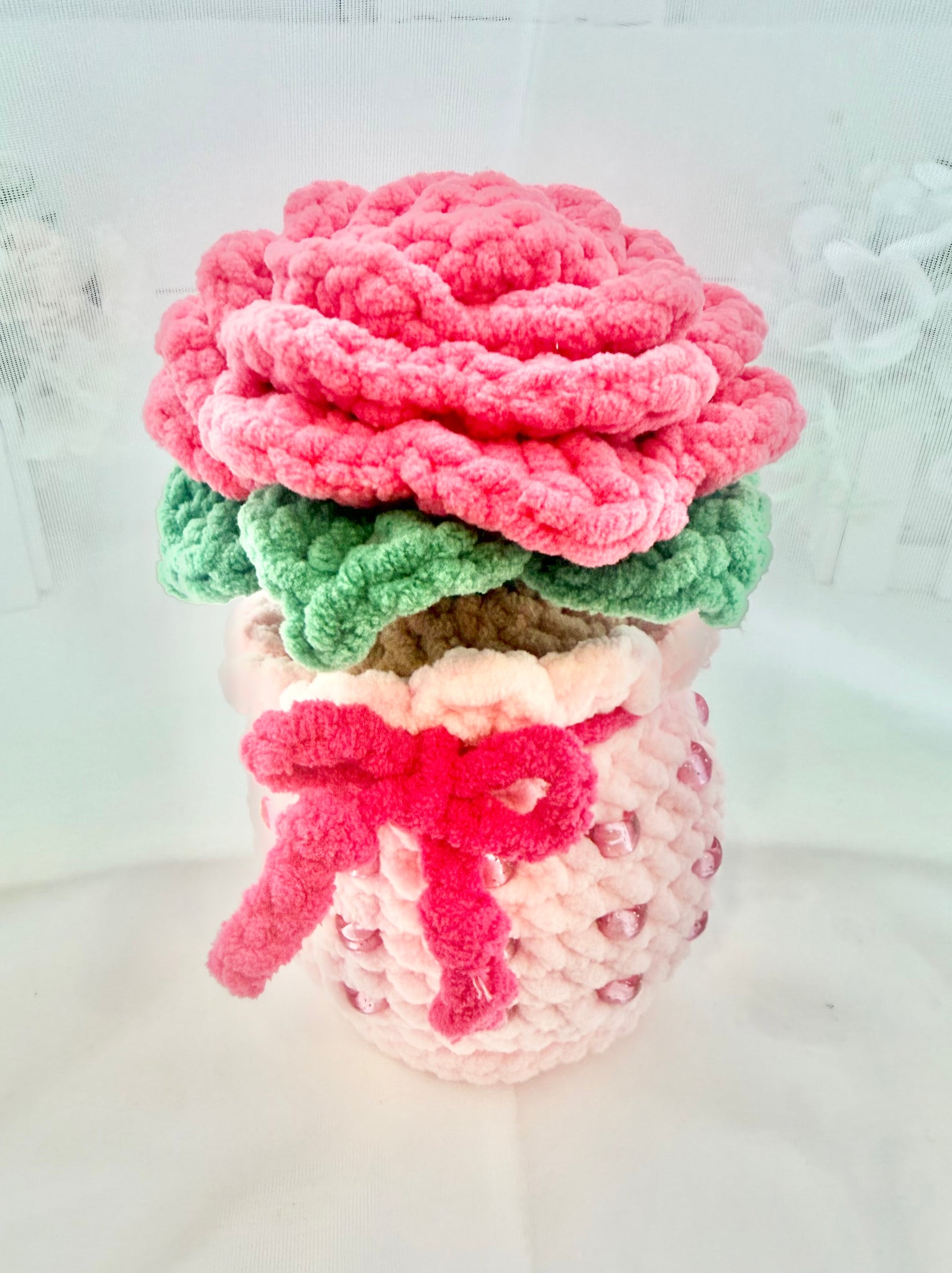 The Potted Rose Beaded Fidget is a fun and cuddly beaded flower pot that has fun perfectly combined with beads along its vase for all your sensory needs. The Potted Rose Beaded Fidget is a cute and adorable crocheted fidget that overflows the fun and calms the sensory overstimulation. The Potted Rose Beaded Fidget is made using a 100% polyester chenille-like yarn, leaving it soft and cuddly with a unique sensory feel without the noise that many fidgets create. The Potted Rose Beaded Fidget will fit any adult or child's hand easily and it is easy to use and manipulate. These are great for classrooms when students need a little something to fidget with, when they are feeling overstimulated. It is highly recommended that a child is shown how/when to use a fidget as a fidget before using in the classroom.