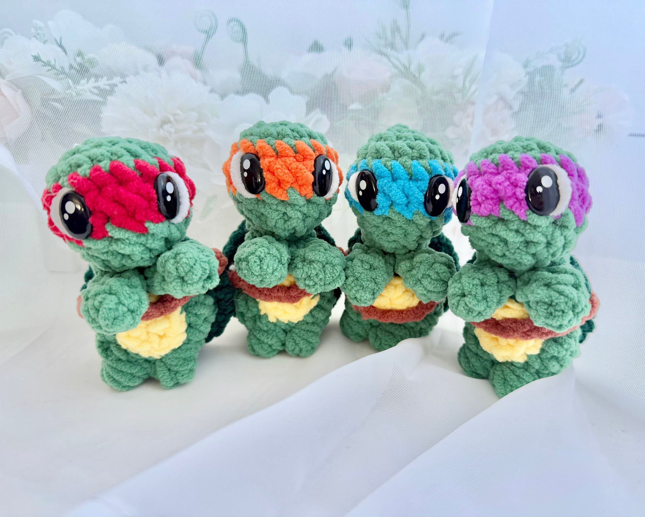 Worry Turtles are made with a soft blanket polyester yarn that provides a soft feel. They contain a single marble in its belly for some sensory stimulation.