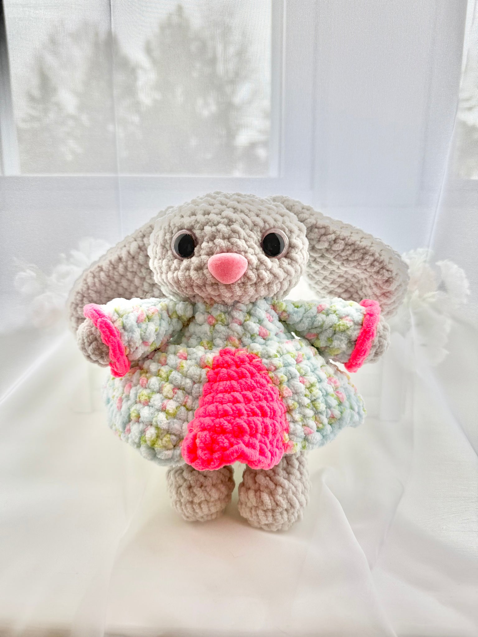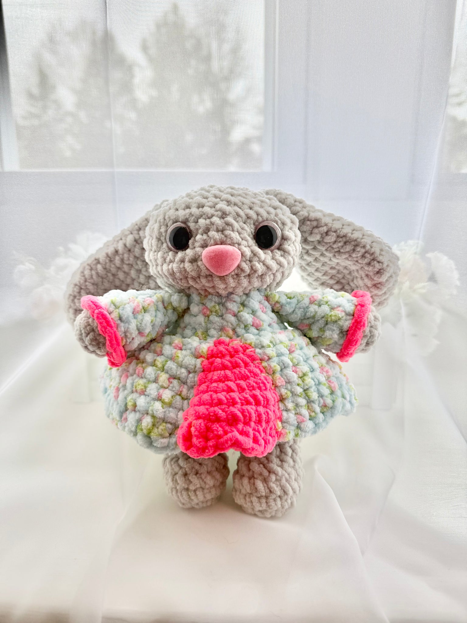 This item was developed from the No Sew Bear and Bunny pattern with the No Sew Princess Bears Mod by the amazing Nooks Hooks. If you are a fellow crocheter wanting the pattern, please check out their Etsy page for the pattern here: No Sew Bear and Bunny Pattern
