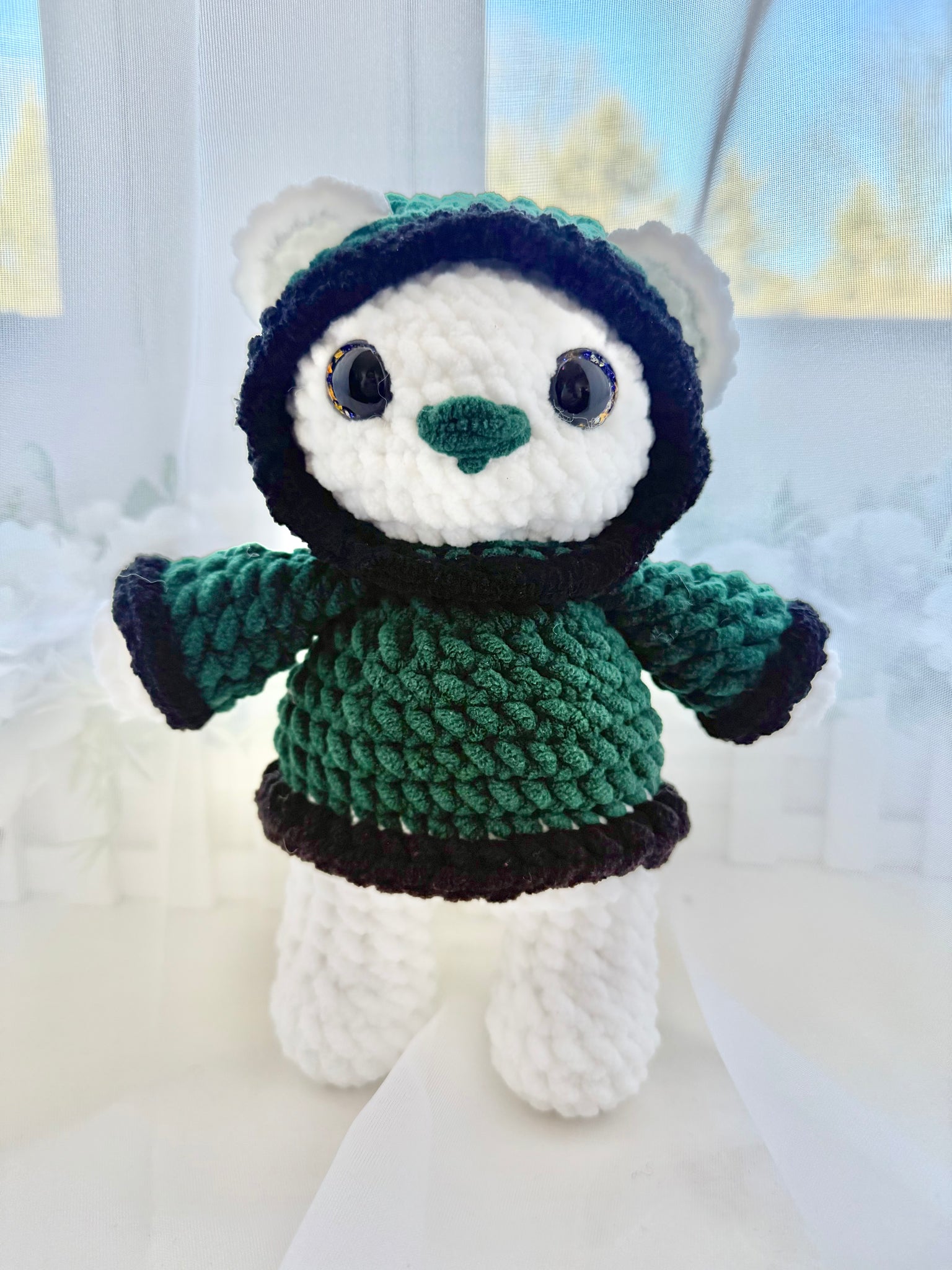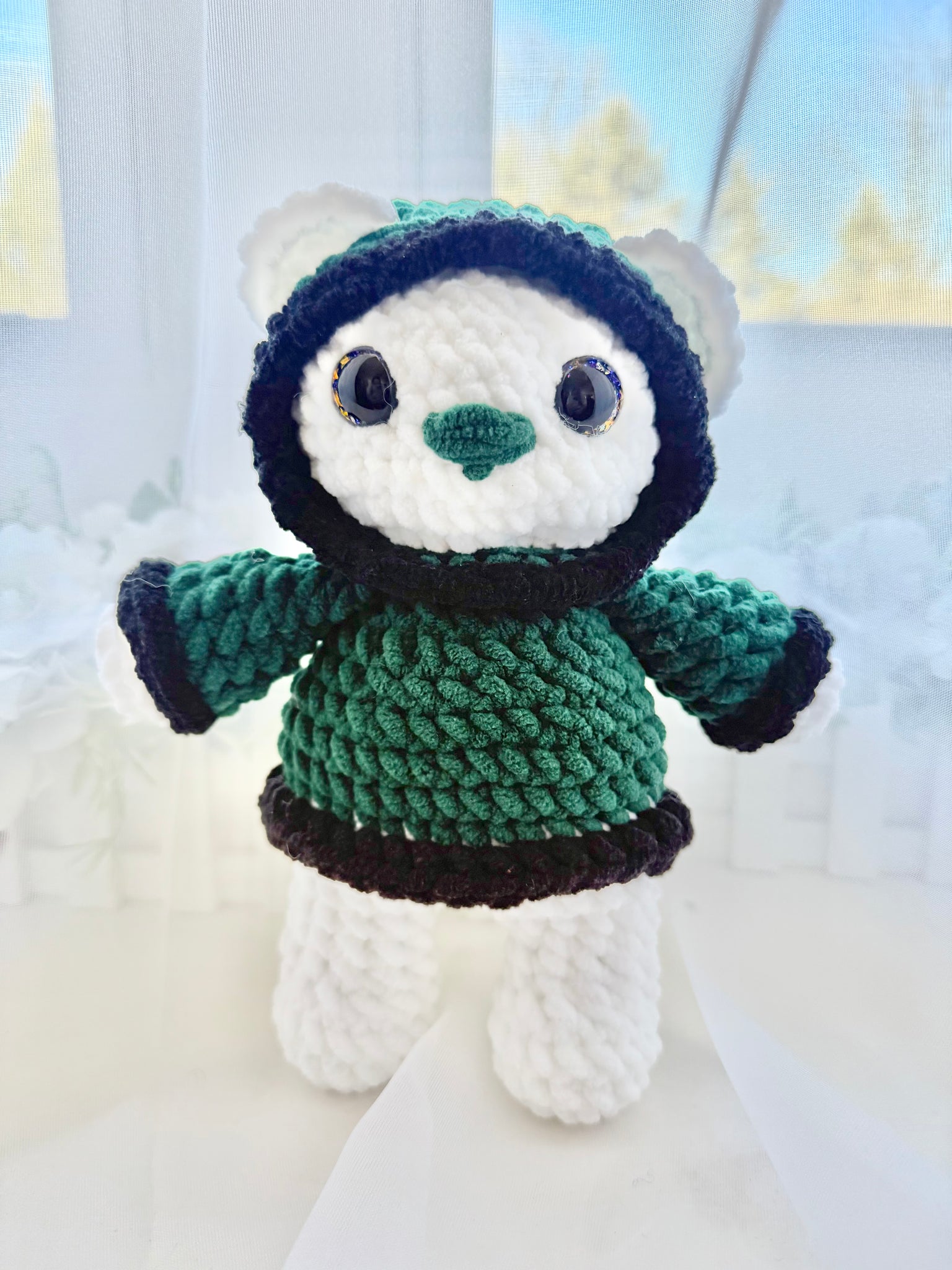 Go Birds the Green Hoodie Bear is a handmade crocheted Teddy Bear in a green hoodie in support of their favorite sports team.