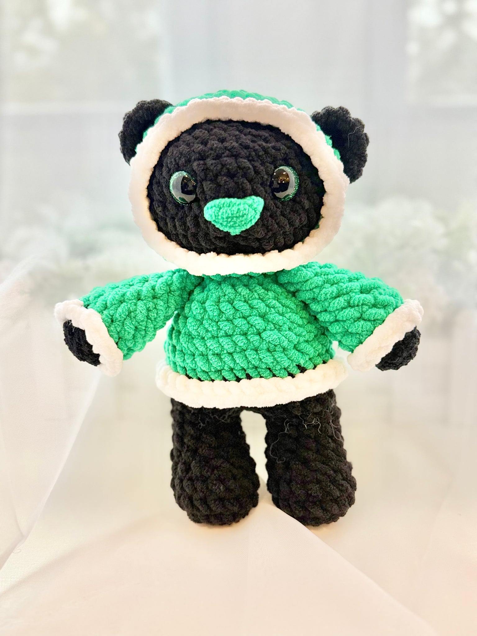 This item was developed from the No Sew Hoodie Bears pattern by the amazing Nooks Hooks. If you are a fellow crocheter wanting the pattern, please check out their Etsy page for the pattern here: No Sew Hoodie Bears.